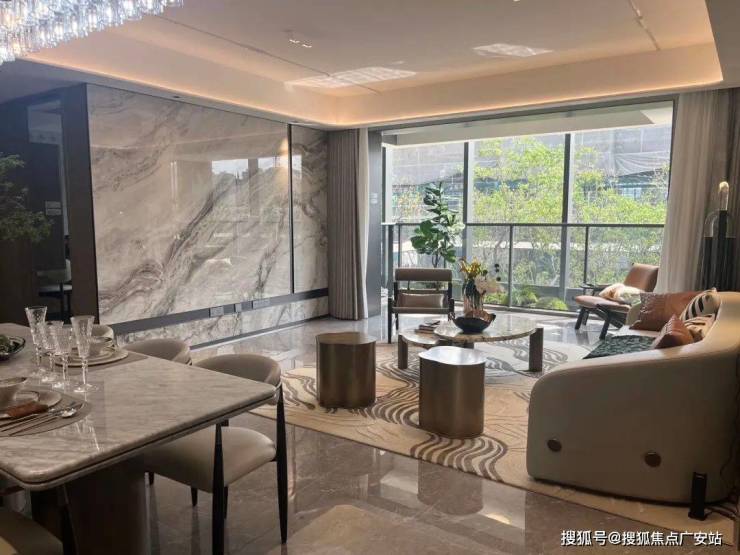客厅岩板背景墙的应用,典雅气派、肌理丰富,营而着简约不失奢华的家居氛围。
