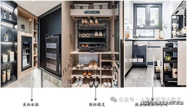 还有室内越级Pro的精睿收纳、超配臻装的品牌用材等空间革新,重塑家庭生活的精神尺度!特别是入户部分的玄关柜、墙柜、餐边柜等,都做了整排一体化,前期同样使用大受好评的S墙设计依旧得到延续,冰箱可以平整嵌入,大方美观。