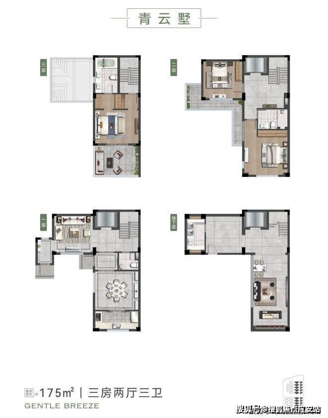 合院约175㎡户型详解:合院的优势在于“L型”的户型排布。