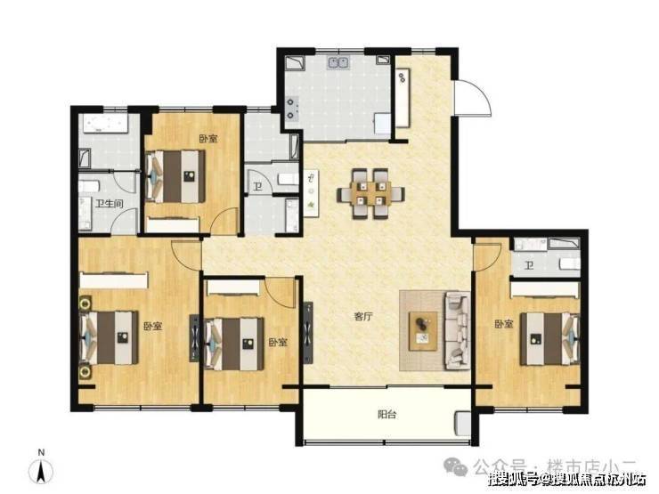 约128㎡四房两厅两卫