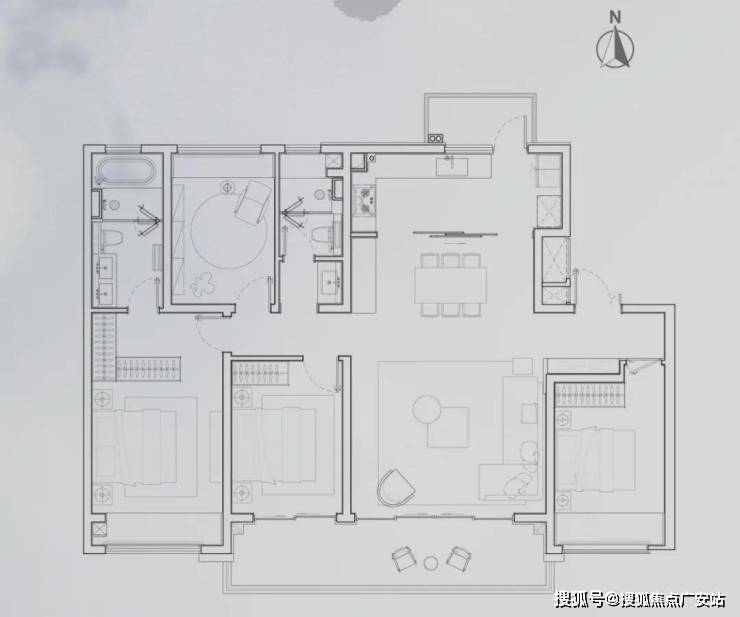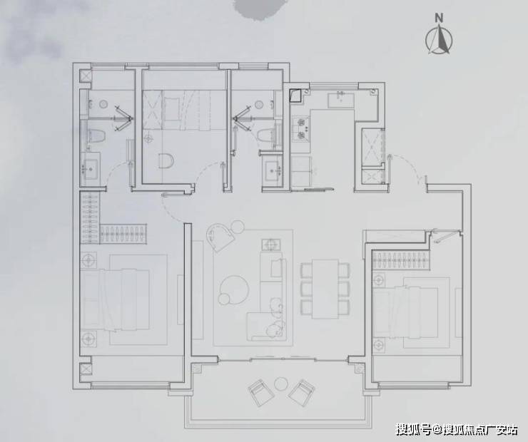 三卧朝南|LDKB格局|双联阔景阳台约2M进深|3+1灵动空间|主卧套房