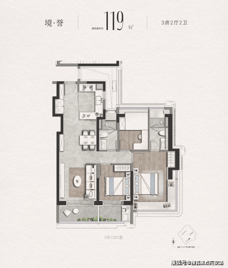 相较于市面上常见的90-100㎡紧凑三房,建面约119㎡提供了更为舒适的生活空间;而与140㎡以上大户型相比,又在总价控制上展现出明显优势。