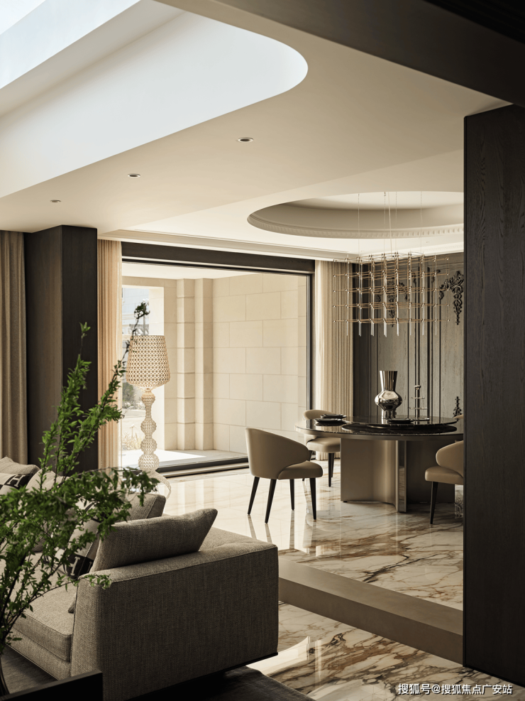 室内规划的是尺度阔卓的大宅布局,大尺度空间格局。在彰显奢适生活排场的同时,又隐匿了美满人生的万象。