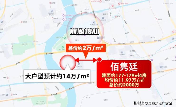 而佰隽廷直线距离前滩太古里仅约1.2公里,步行就能接入核心配套,同是4房户型,单价却比前滩核心大户型低约7万/㎡,算下来一套房总价能省1200万+,就能享受前滩TOP级配套。
