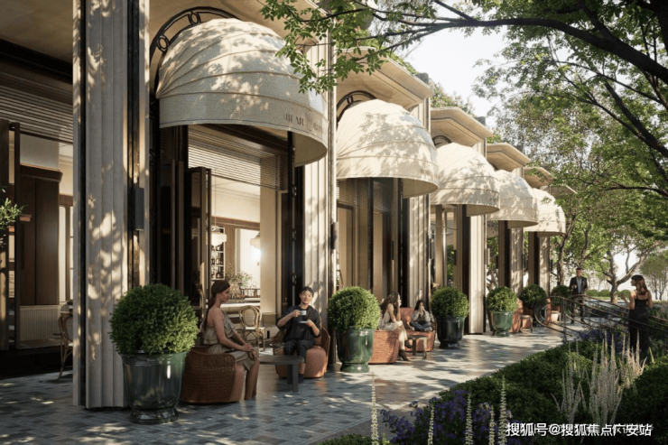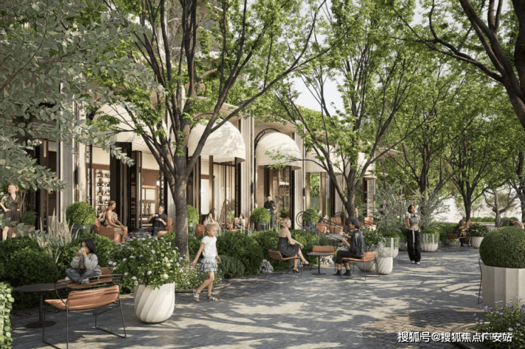 项目摒弃了传统社区依赖零散沿街底商的模式,创造性地提出“化路为园”的颠覆性理念。在这一框架下,商业、景观与生活配套不再是孤立的功能块,而是融为一条以黄浦江S湾为灵感、蜿蜒流动的“生活丝带”。这条主动线巧妙串联起“城市驿站”“榉树广场”“街角咖啡厅”等多元节点,创造出一种在花园中漫步、游逛、相遇的沉浸式体验。