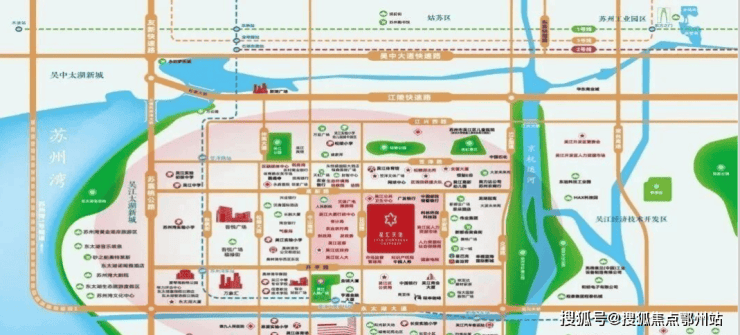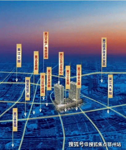 吴江区作为国家战略长三角一体化优先发展示范区,占据苏州南部门户核芯位置,成就城市价值新高地;项目落位吴江主城核芯区,毗邻吴江区政府,中芯地段占位一城主场。