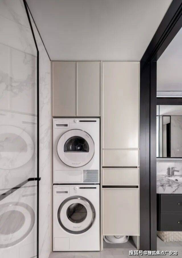 1 61户型还交付家政间,洗衣/烘干机和柜体都已配备齐全。