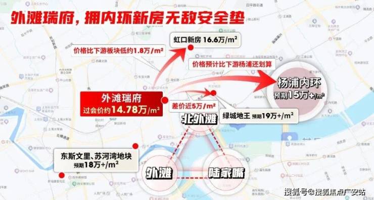 外滩瑞府离外滩更近,绿城地王位于北外滩,两者直线距离不过约1公里,但新房差价或4-5万/㎡。您认为品质差不多的情况下,未来差价有这么大?