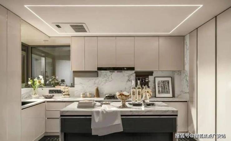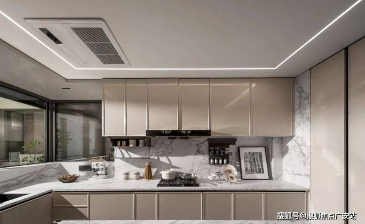 另外,在整体动静分区的格局下,U型厨房不只是单纯的烹饪场域,更融入“社交属性”,让人们在烹饪的同时,也能与客厅的家人交流。