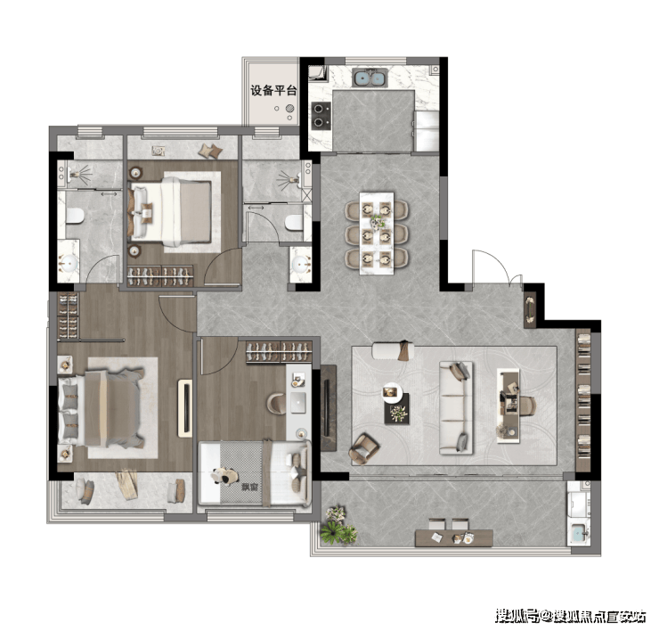 项目选配海尔中央空调、汉纳纳米地暖、爱迪士新风系统;采用超规格910*127*1200mm书香门第实木复合地板;汇集科勒卫浴、恩仕、立邦等国内国际一线品牌,整体呈现当代高端度假酒店式色彩风格与高颜值色系。
