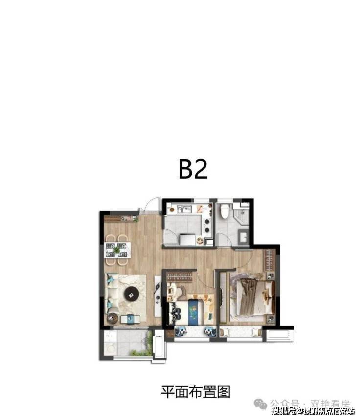 建面约74㎡两室两厅一卫