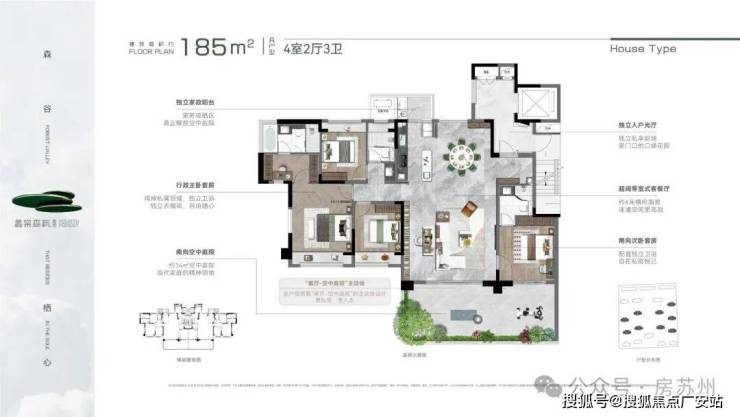 ·产品规划:建面约150㎡、185㎡、220㎡,户均约30-50㎡空中庭院