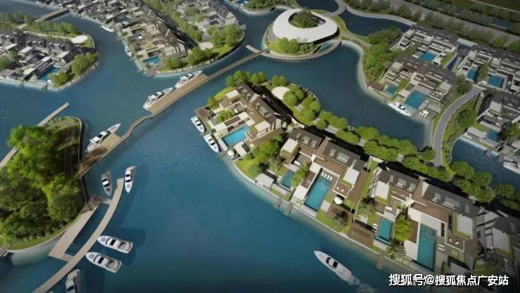 项目从此前曝光的设计方案就可以看出亮点,每一排别墅前都有一条渠道,引入水系,可以停游艇。