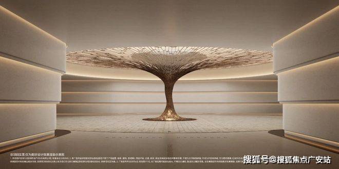 项目大门内外两重门厅景墙运用月光米黄石材近1000 方,搭配香槟金金属线条,汲取爱马仕全球旗舰店的双曲面叠墙造景手法,增加景墙奢华质感。