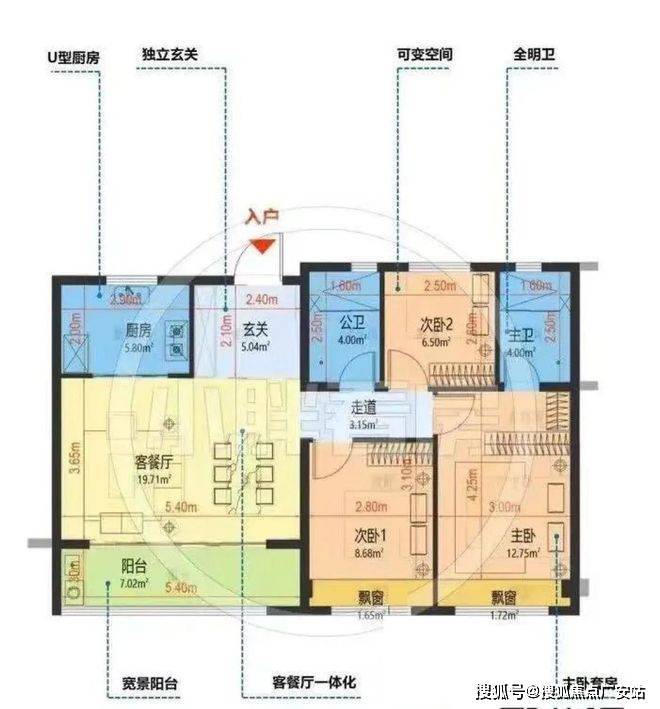 对比之下,可以看到招商爱达1872的建面约106方户型南北通透!客餐厅面宽更加舒适,相比传统的3房户型要出色很多!