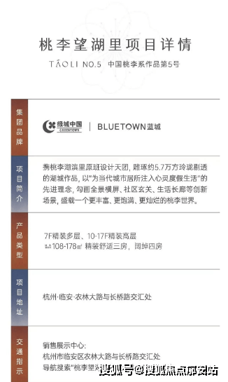 青山湖边,800米地铁站,蓝绿双城开发,低密洋房现房产品 桃李望湖里售楼处地址位于临安滨湖新城农林大路与长桥路交汇处