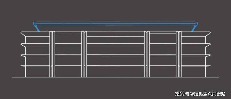 建筑群落的造型设计,是对运河意象的双重转译:低层的叠墅承水韵:立面三段式构图,以基座的厚重、中段的舒展、顶部的收束,奠定沉稳的视觉基调。设计中对运河与拱宸桥“弧线基因”的提取——拱宸桥历经百年的半圆桥洞,化作立面主框架的柔和弧线;运河水面随波流转的涟漪,凝练成屋顶层层退进的曲线构架;甚至漕船破浪时的动态轨迹,也融入到立面线条的韵律之中。