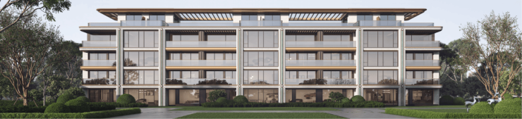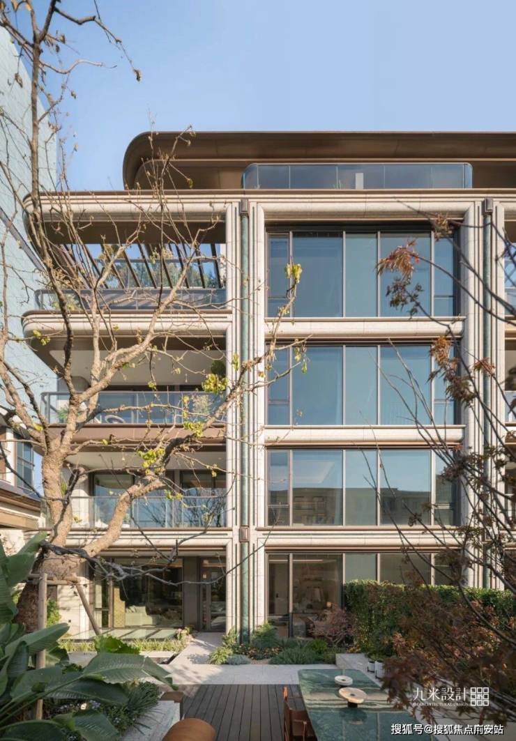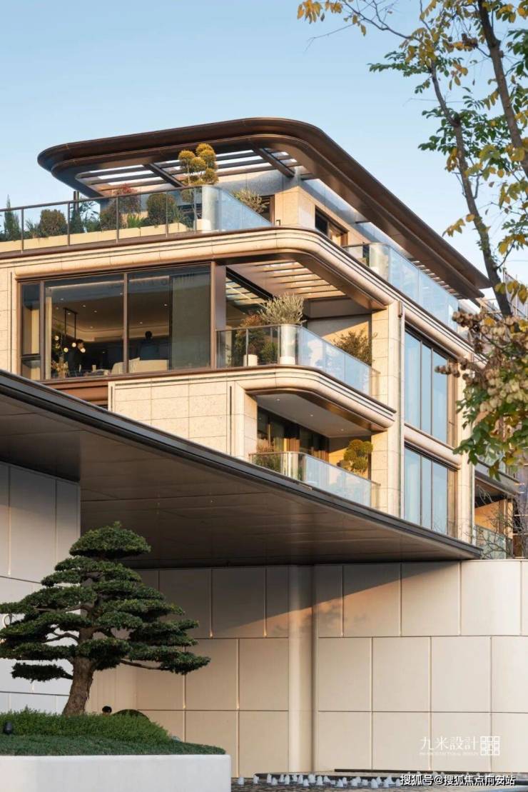 其二为“天青釉”色,源于江南青瓷的釉色晕染,化作叠墅南立面的奢石壁柱,在光影下泛着内敛的光泽;