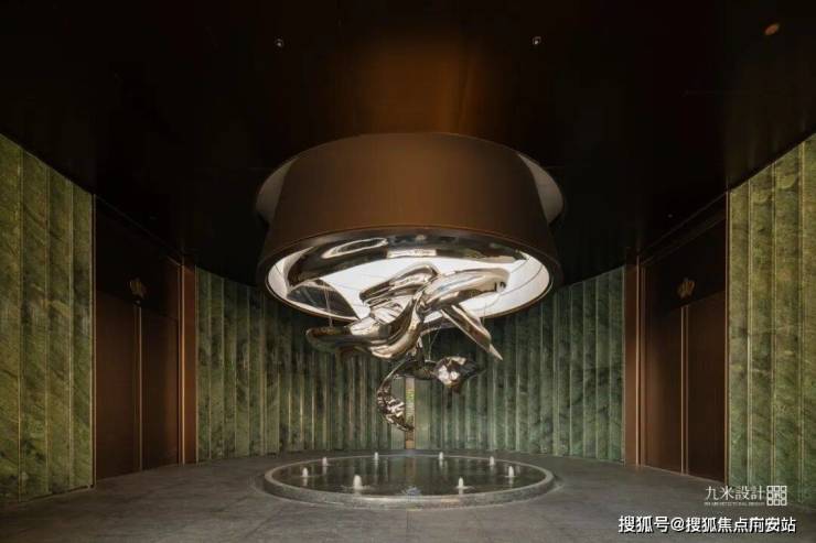 空间随之一转,步入光影交织的长廊,这里成为繁华城市与桃源生活的自然过渡。第二进为内部的地面花园,氛围安定,令人沉浸其中。继续向前穿过连廊,便抵达第三进——一处利用近8米高差打造的下沉式庭院。设计借意“九溪十八涧”,营造出九重水景:溪流、水潭、叠泉层层相续。置身院中,仿若步入一方微缩山水园林。