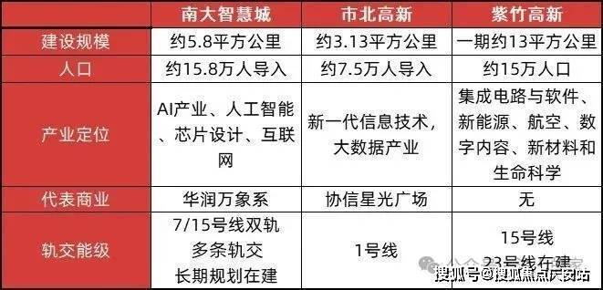 可以看到,在产业定位上,南大智慧城定位与其他两者相比,不遑多让;但是未来人口的密集程度,南大智慧城最高,这意味着更密集的产业需求,从而带动更庞大的居住需求。