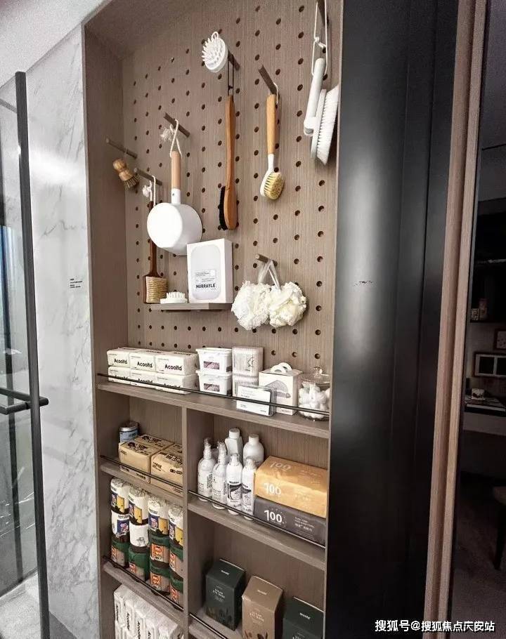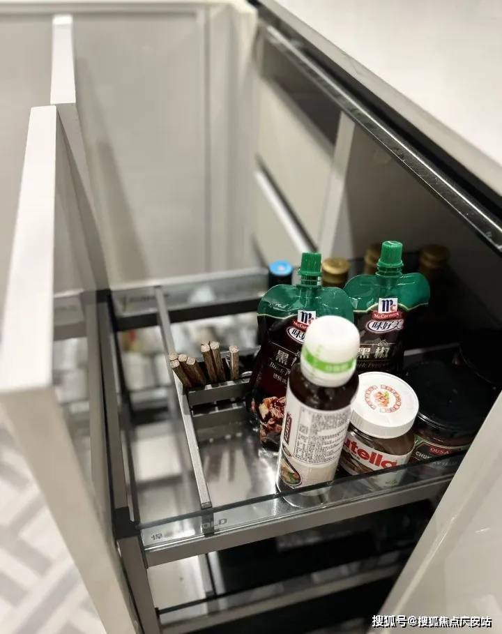 可抽拉的零食柜、厨房抽屉式碗碟拉篮、包括卫浴的收纳墙,于细节之处见真章。