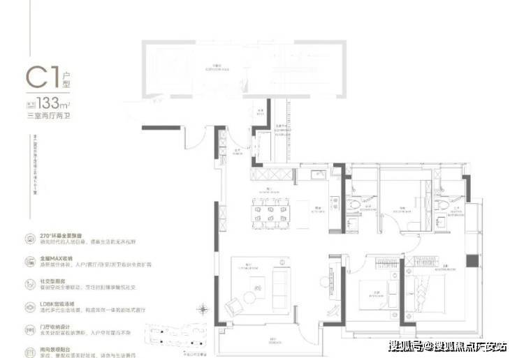 133㎡的四房产品是项目的明星户型,板块内以及整个中环难得的改善型作品。