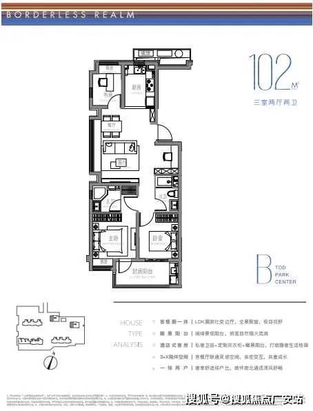 建面约102m²户型: