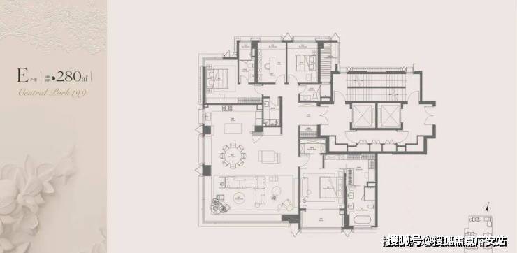 210㎡ 四房:2912–3240 万,俯瞰公园景观、大尺度套房