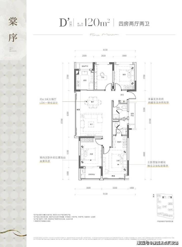 亮点:四开间朝南、南向面宽约13.5米、全明通透、主卧衣帽间