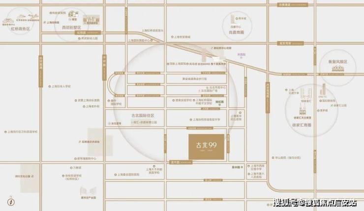 1-1.5公里步行圈:古北1699广场、黄金城道步行街、高岛屋、古北市民中心、体汇+名都体育公园、虹桥高尔夫球场、古北SOHO、程十发美术馆;2.5-3.5公里生活/商务圈:尚嘉中心、南丰城、老外街、世贸商城、徐家汇恒隆、新鸿基ITC、爱琴海购物中心、万象城、仙霞网球中心、西郊宾馆、虹桥迎宾馆、漕河泾开发区;