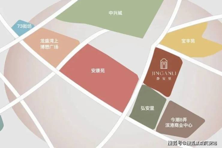 东邻今潮8弄(巴金图书馆、滨港商业中心已绽放)、西接安康苑&龙盛湾上(规划超甲办公/星级酒店/石库门商业),南望弘安里传世石库门大宅。