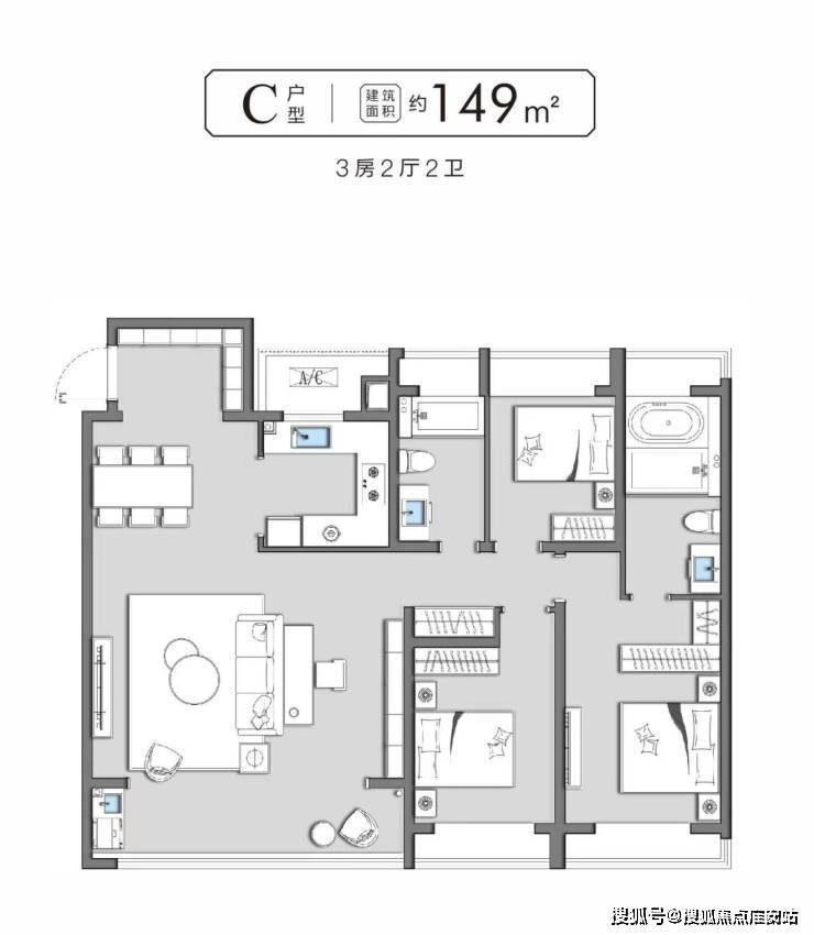 149㎡四室两卫南向双阳台,精装含新风系统约283万舒适度与品质平衡
