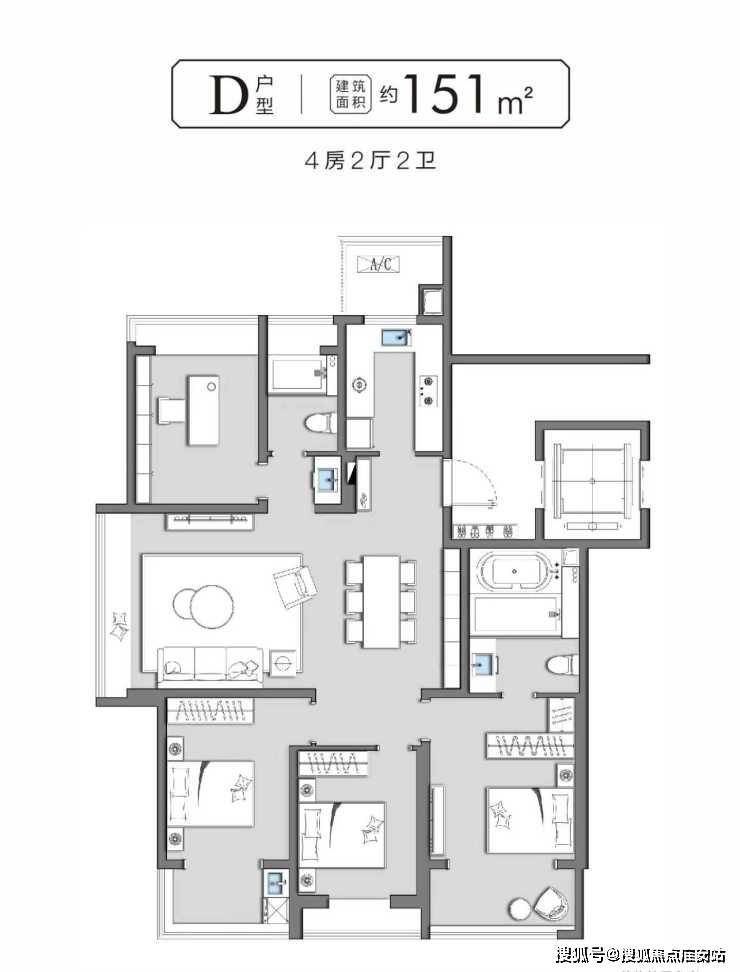 151㎡四室两卫主卧套房,私密性强约287-398万高端改善首选