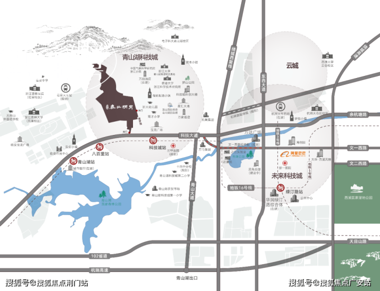 从未来科技城到春山明月大概20分钟路程,而且,未来科技城的中心其实不在阿里巴巴附近,而是要往西延伸。春山明月接壤科技大道,附近亦有城市轻轨,今天,临安撤市建区,青山湖科技城规划与未来科技城是一体的,“杭州硅谷墅区”的角色已然成熟。