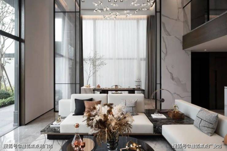 “社交型态的设计”在台墅中获得了淋漓尽致的实现。首先是下叠,大面宽空间设计,充沛的阳光与风景;门前规划了大尺度庭院空间,样板房采用了“酒店式”现代庭院设计,可满足多个家庭的聚会。庭院,带来了身心的安顿,未来也将提升低密物业的“价值”属性。