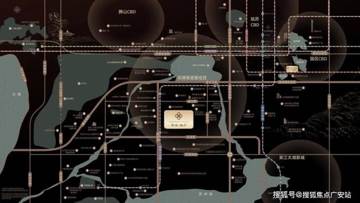 石湖作为苏州重要的历史文脉与自然资源坐标,北承姑苏区,西联虎丘高新区,东接吴中城南,于三区交汇之地定义一座“主城之湖”。绿城·樾庐位于石湖南岸,以“三山两湖”的城市谧境,尽揽地铁、教育、商业等丰盛配套资源,成为繁华中的山水宜居谧境。
