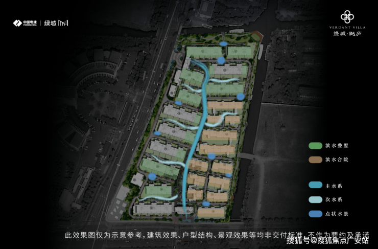 绿城·樾庐外部打造约500米长水岸绿带「玉带湾」,呈现可漫步、可停驻、可社交的诗意栖居场域。内部以一条水轴「樾溪川」构筑当代园林系统,并划分两大业态组团,同时以支脉水系分割,形成岛屿化组团,在水境空间中勾勒流动的静谧体验。