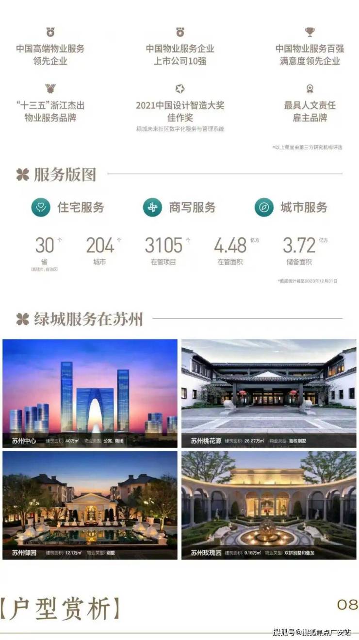 绿城服务集团成立于1998年,总部位于杭州市西湖区,是一家以物业服务为根基、以生活服务与城市服务为两翼,以智慧科技为引擎的数字化、平台化、生态型的现代服务企业。自2012年进入苏州市场,绿城服务经过多年精耕细作,目前服务面积近1328万㎡,服务业主超50000户。