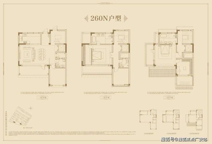 面积配比:3栋独栋约450平;16套双拼约340-360平;27套合院约250-310平。