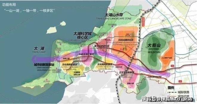 太湖科学城是落实长三角一体化国家战略,打造长三角国家创新中心,建设世界级生态湖区、创新湖区的重要载体,未来将建设5大功能板块,包括:重大科学研究区、科教资源汇集区、交叉平台集聚区、科技成果转化区、文化商务配套区。
