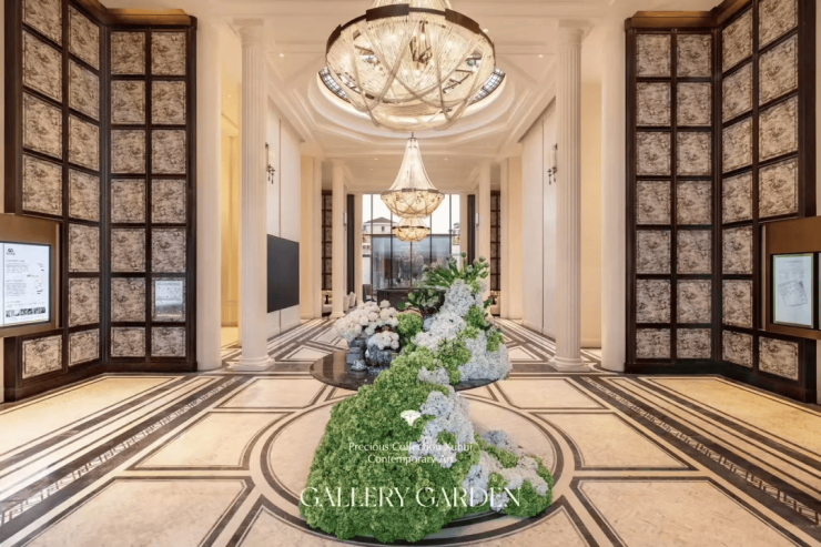 一路定制的游园式归家动线,让业主目之所及均为风景;中央会客花园内,绿植四季皆景,中央庭院景观轴上,则布局双下沉式庭院增添社区精致错落的氛围,提升归家仪式感的同时,给予业主家的温馨。