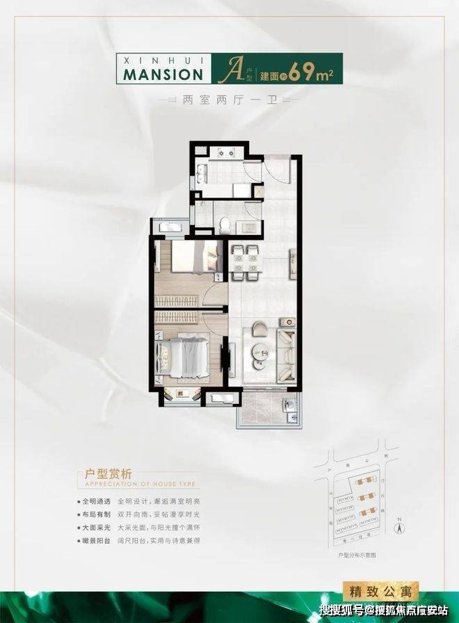 同润欣汇名邸建面约69㎡2房样板间实拍▼