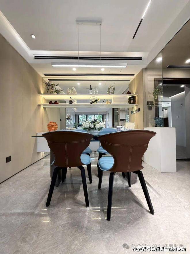 独立的入户玄关,出入皆有生活的仪式感,更方便做细致的收纳分区;客厅、餐厅相互独立,客厅南连宽景阳台,餐厅北连飘窗,让空间得以延展的同时,也让阳台的功能多样化;厨房就近连接餐厅,动线清晰,客餐厅通透明亮。