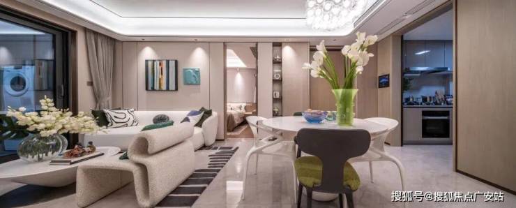 建面约104㎡2+1户型,是甜蜜二人世界到温馨三口之家的理想成长型居所,约5米阔尺横厅VS「+1」空间的双重设计,轻松放下3米长的大转角沙发、大茶几,并且还能摆下1.8米长的餐桌和六把餐椅,空间依然游刃有余,还能延伸出更多亲子与趣味空间。