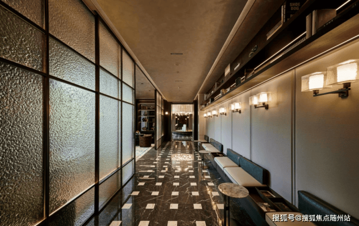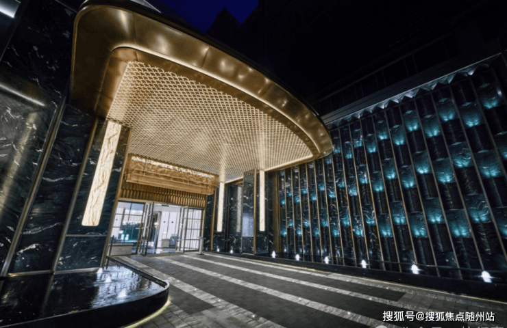 豪华酒店式门头,是整整用了一年时间才打磨出来的。香槟金吊顶,镌刻精致龙鳞祥云纹,细节处彰显高贵;通透质感的玻璃屏风与景观水系,两侧沿中轴展开,极致恢弘。