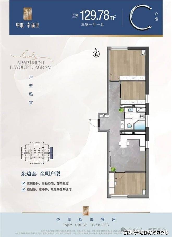 C户型129㎡——3房户型(空间规划明确,更具生活性)