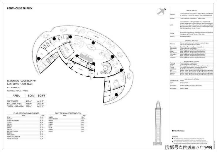 大厦共65层,将容纳150套住宅,包含二至五居室、顶层公寓,每套住宅均以标志性汽车模型命名,向奔驰传奇致敬同时,也为居住者带来了一种独特的归属感。▽