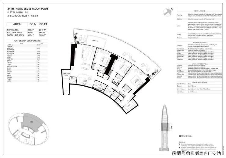 顶层的无边泳池更是一大亮点,奢华且优雅,提供了绝佳的视野和豪华泳池体验,340米的高度让人感觉仿若置身云端,哈利法塔等市心天际线美景一览无遗。令人惊喜的是,除了顶层泳池,楼内的150套住宅,每套也都带有独立的私人泳池。BTW,户户泳池成了这两年迪拜顶豪标配。▽