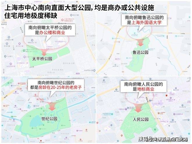 具体到上海,你会发现市区南向俯瞰大型优质公园的房子,有也只是20年以前的老房子。