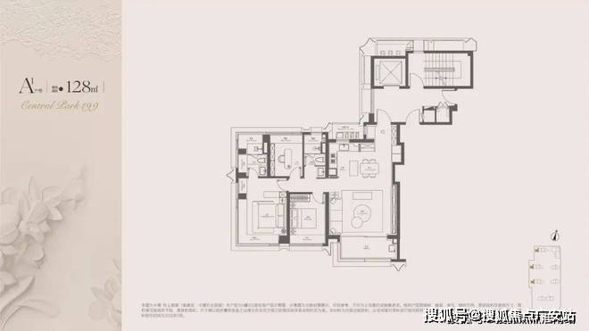 我们就拿最小的建面约128㎡的户型来看: